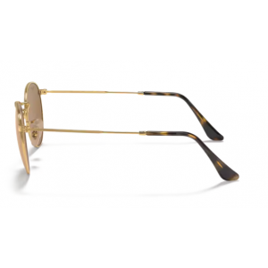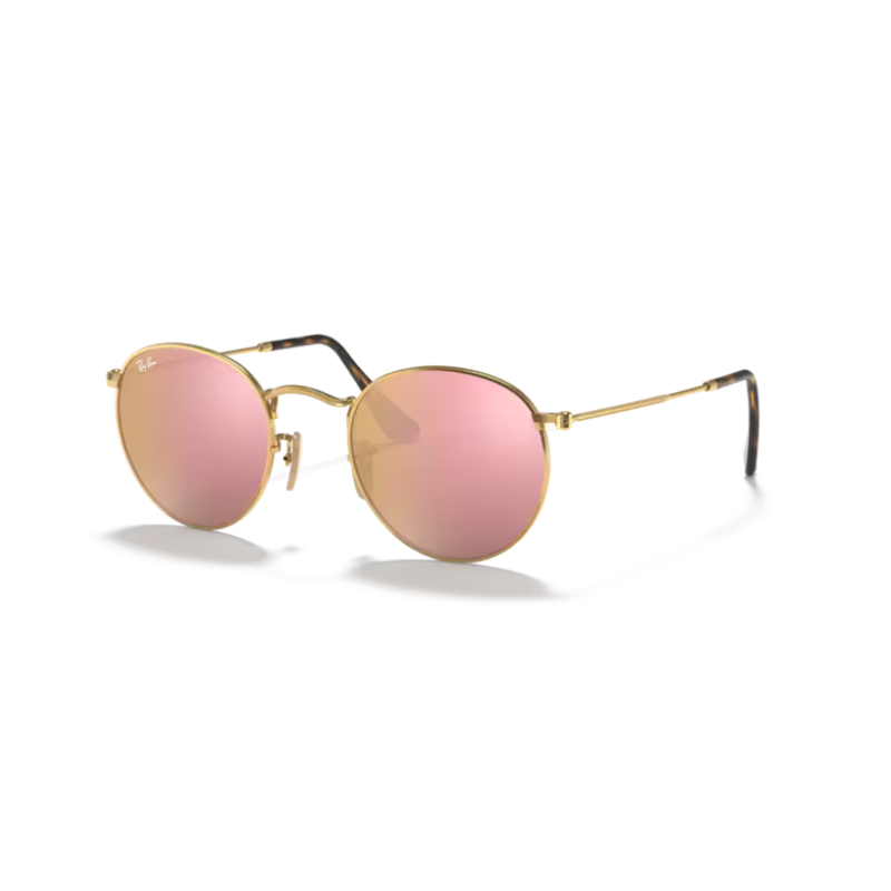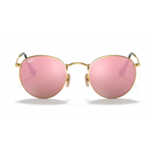 Montatura in metallo oro con lente tonda marrone tinta unita specchiata rosa