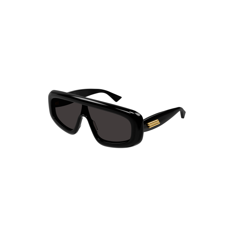 Montatura a mascherina in acetato nera con lente grigia tinta unita