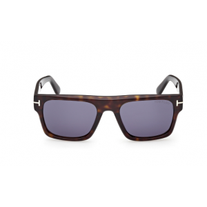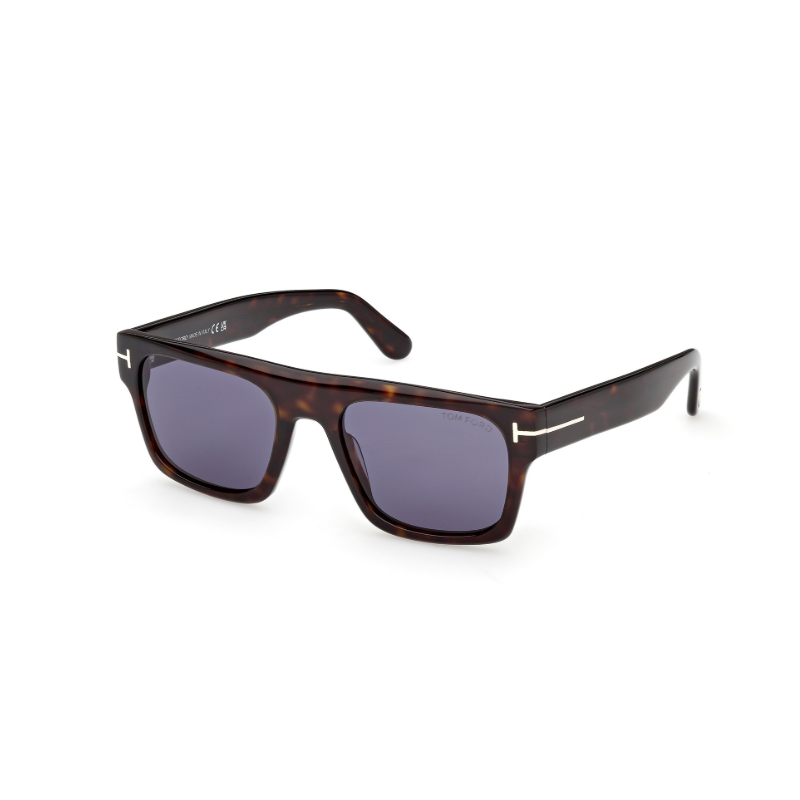 Montatura squadrata in acetato avana scura con lente blu scuro tinta unita
