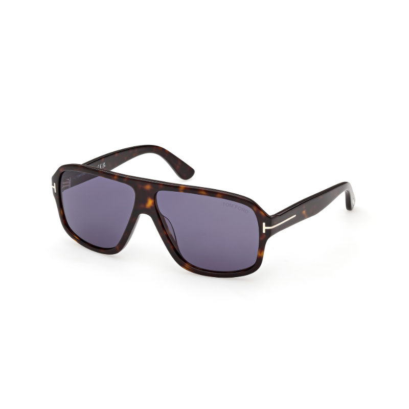Montatura dalla forma navigator avana scura con lente blu scuro tinta unita