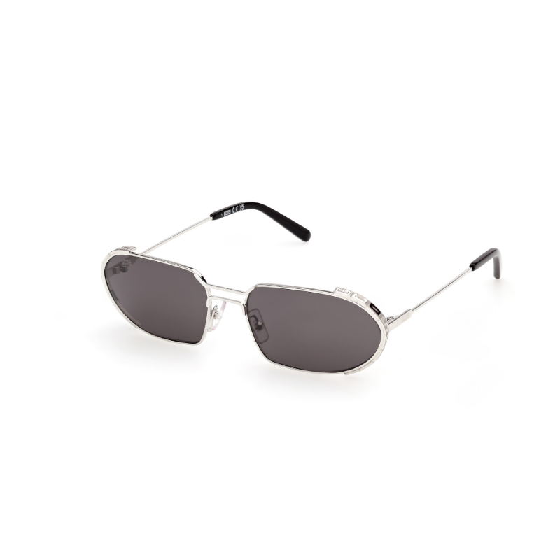 Montatura in metallo ovale/irregolare argento con lente grigio fumo tinta unita