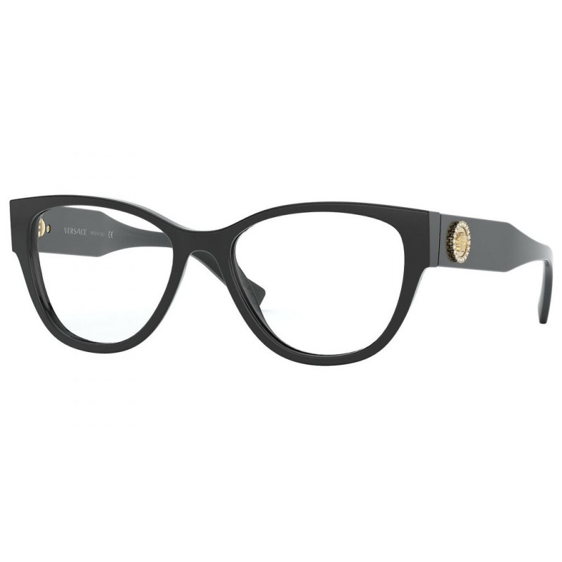 Montatura in acetato nera calibro 53, con dettagli Versace sulle aste.
