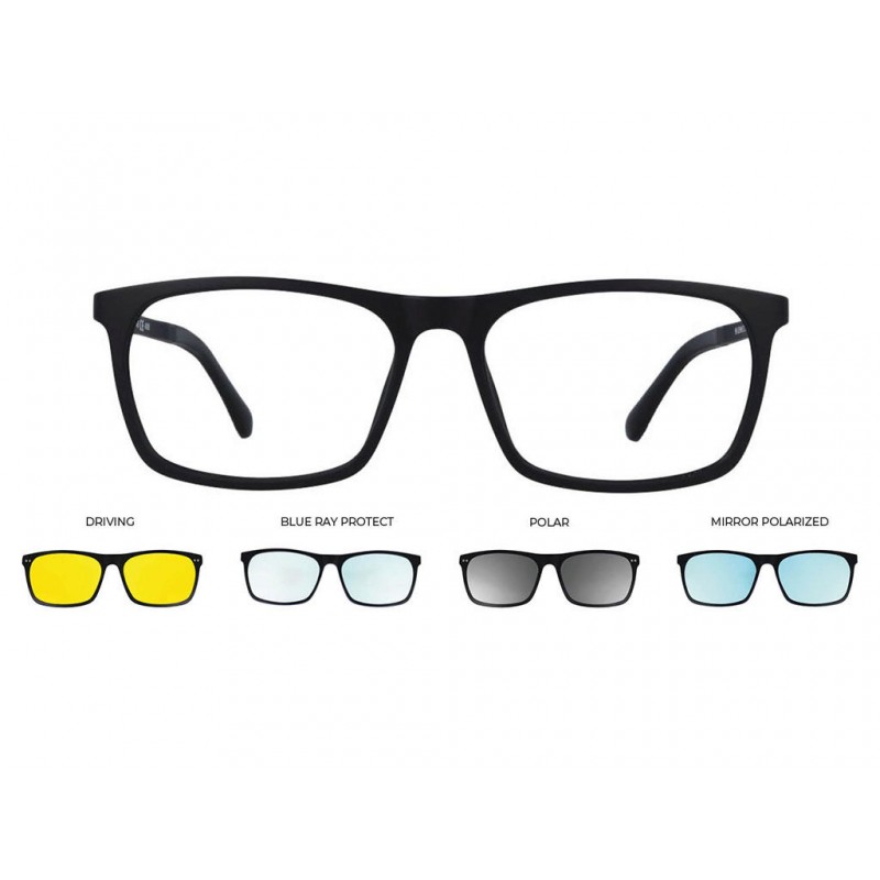 Completo di cofanetto portaocchiali più 4 clip da sole con lenti polarizzate.