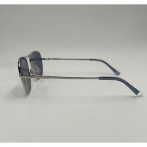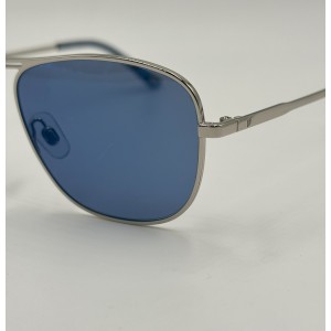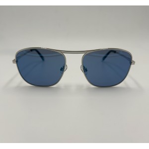 Montatura in metallo argento, lente squadrata blu tinta unita.