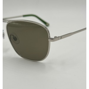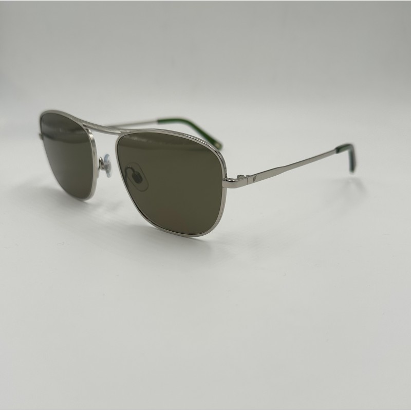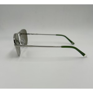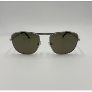Montatura in metallo argento, lente squadrata verde tinta unita.