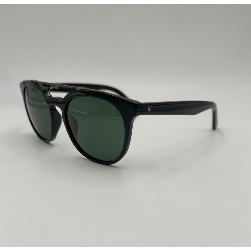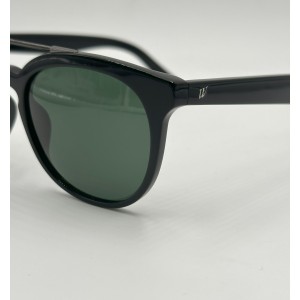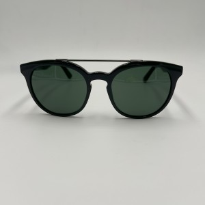 Montatura in acetato nero lucido, lente tonda verde tinta unita.