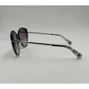 Montatura in acetato tartarugata-grigia, lente tonda grigia sfumata.