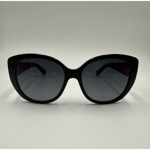 Montatura in acetato con frontale nero lucido, lente a gatta grigia tinta unita, calibro 55.