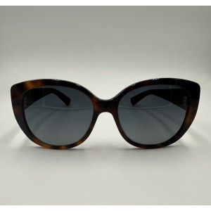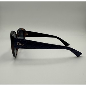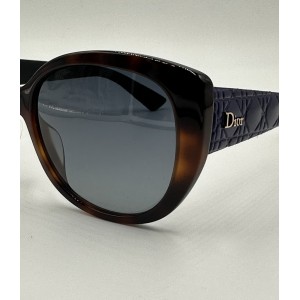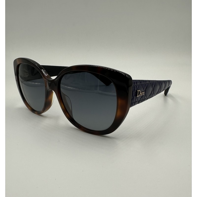 Montatura in acetato con frontale tartarugato lucido, asta blu, lente a gatta grigia tinta unita, calibro 55.