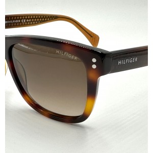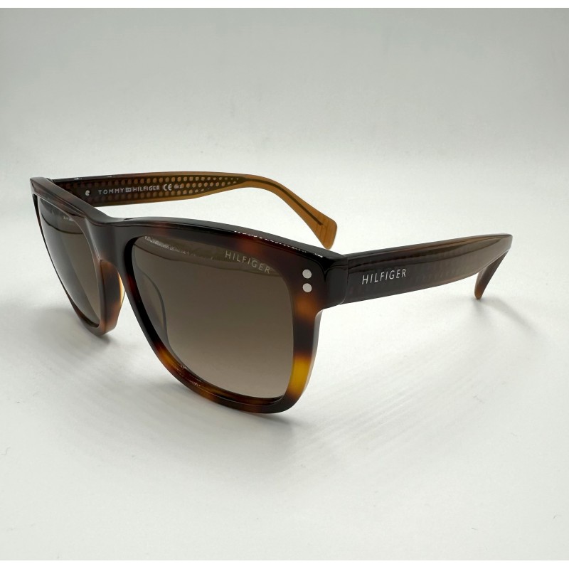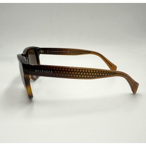 Montatura in acetato tartarugata con lente marrone sfumata.