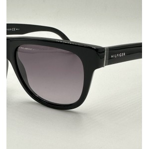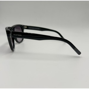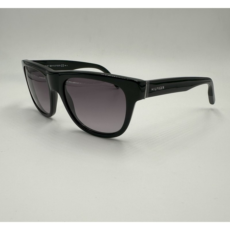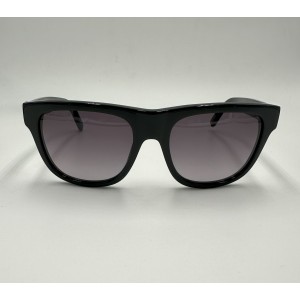 Montatura in acetato nero lucido, lente squadrata grigio sfumato.
